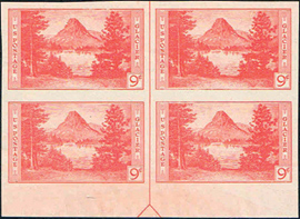 ![]() "Great Seal of the United States" Air Post Special Delivery, Scott 771, of which only 5,734 were printed is priced at just $42.50. ![]() "Mt, Rockwell, Glacier National Park" Plate Block, Scott 764, 1934 |