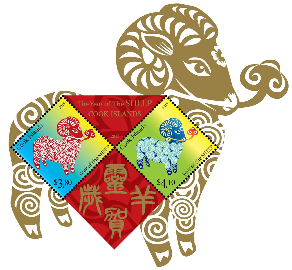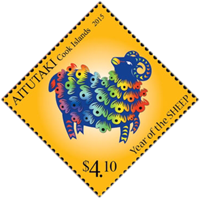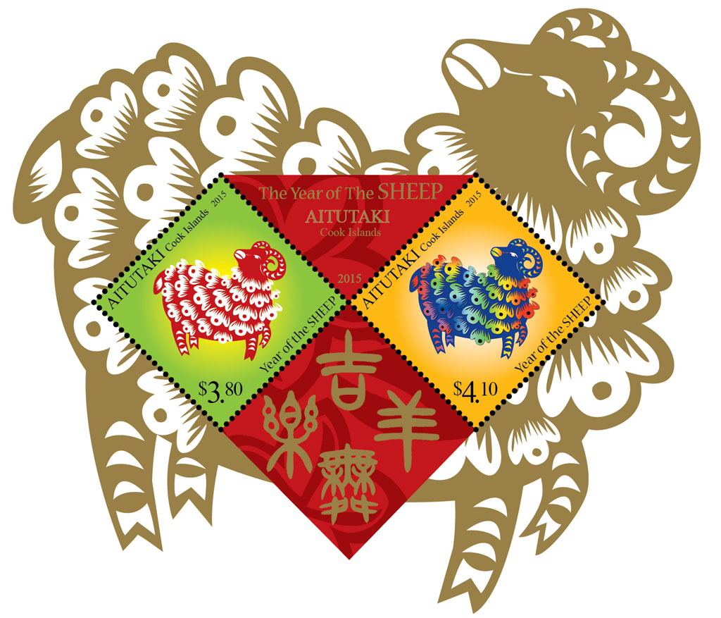 — January 2015   |  Aitutaki (shown) [Click to see Aitutaki Lunar Stamp -Year of the Sheep, Tonga Lunar Box Diagram, assembled Tonga Lunar Box Diagram, Cook Islands Lunar Stamp -Year of the Sheep]