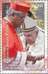 Cardinal Mafi — On April 1, 2015, the Kingdom of Tonga in the South Pacific celebrated the appointment of the Polynesian nation's first Cardinal. Soane Patita Paini Mafi, appointed by Pope Francis on February 14, 2015, not only became the first Cardinal from Tonga but also, as Cardinal Mafi, at 53, became the youngest member of the College of Cardinals.