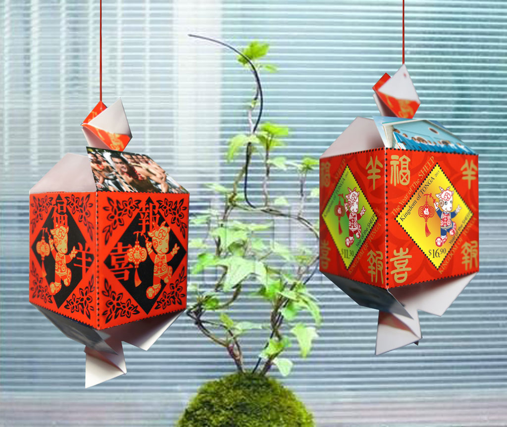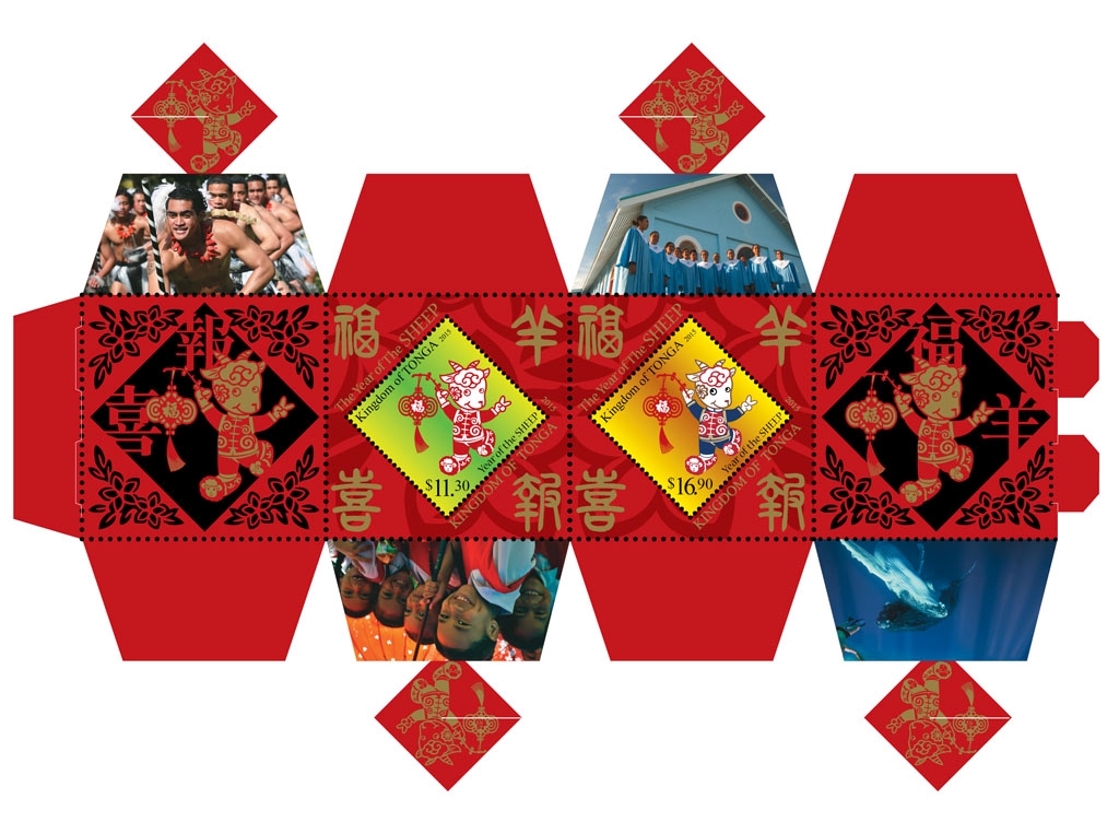 To celebrate the Lunar New Year, six South Pacific nations combined to create an imaginative set that includes five miniature sheets and a set of 3D stamps from Tonga, shown here before and after folding to form the 3D issue.