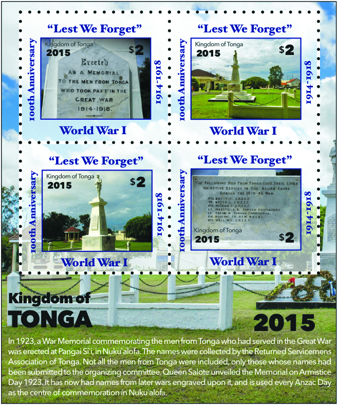 — February 2, 2016  |  Tonga - 100th Anniversary WWI (shown)