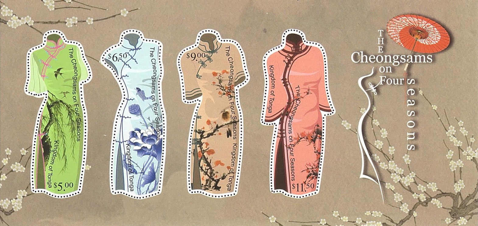 [Click to see: Cheongsams on Four Seasons stamp sheet]