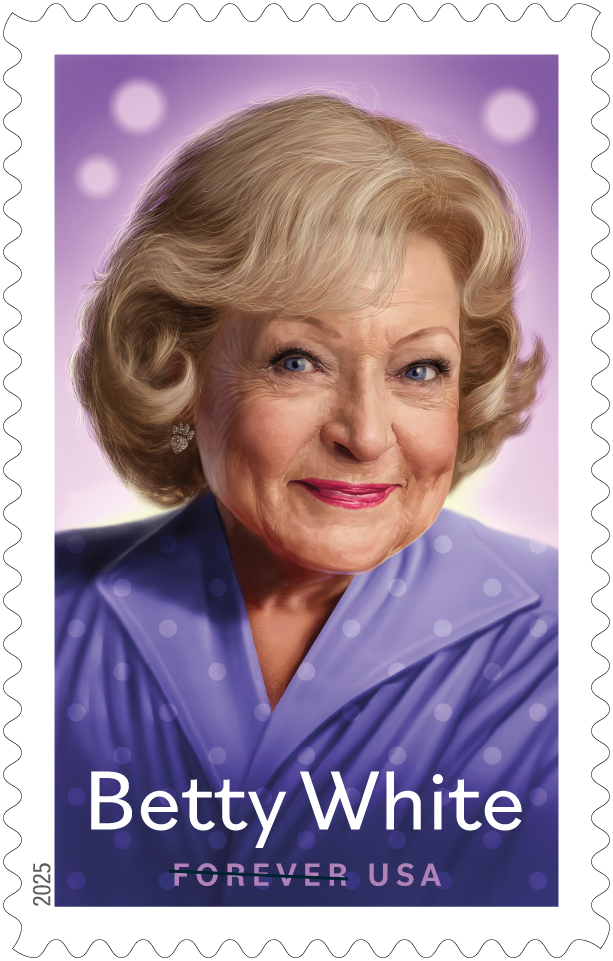 Betty White Forever Stamp This collectible Forever stamp honors beloved American actress and comedienne Betty White (1922-2021), who shared her wit and warmth with viewers in a career that spanned more than 60 years. White was honored with five Primetime Emmy Awards for her work in television–including roles on “The Golden Girls” and “The Mary Tyler Moore Show–as well as three Screen Actors Guild Awards, a Grammy Award and a star on the Hollywood Walk of Fame. She was also much recognized for her animal welfare work. Her impish smile was captured by photographer Kwaku Alston and carried over to the stamp by USPS art director and designer Greg Breeding. |