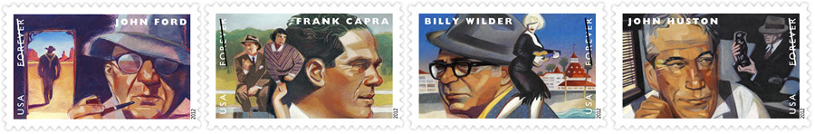 Great Film Directors [Click to see 4 designs] — May 2012 | Silver Spring, MD 20910 Fans of Hollywood will probably debate endlessly both which directors were better than others, and which films deserve more recognition than others. The selections for this block of four are John Ford, Frank Capra, Billy Wilder and John Huston. Just a list of their great films would probably fill a couple of pages. |
