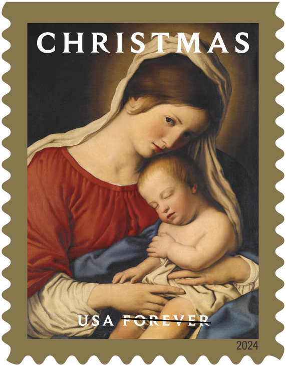 Christmas Madonna and Child Forever Stamp A new traditional Christmas stamp will be issued in 2024 featuring the Madonna and Child from the Workshop of Sassoferrato. Giovanni Battista Salvi da Sassoferrato (1609-1685), gained popularity for his modestly scaled depictions of the Madonna and Child. It is not known whether he painted this work or if it was painted by another artist in his workshop. The painting is in the collection of the Indianapolis Museum of Art at Newfields. William Gicker was the art director for the project. Greg Breeding designed the stamp, which will be sold in booklets of 20. |
